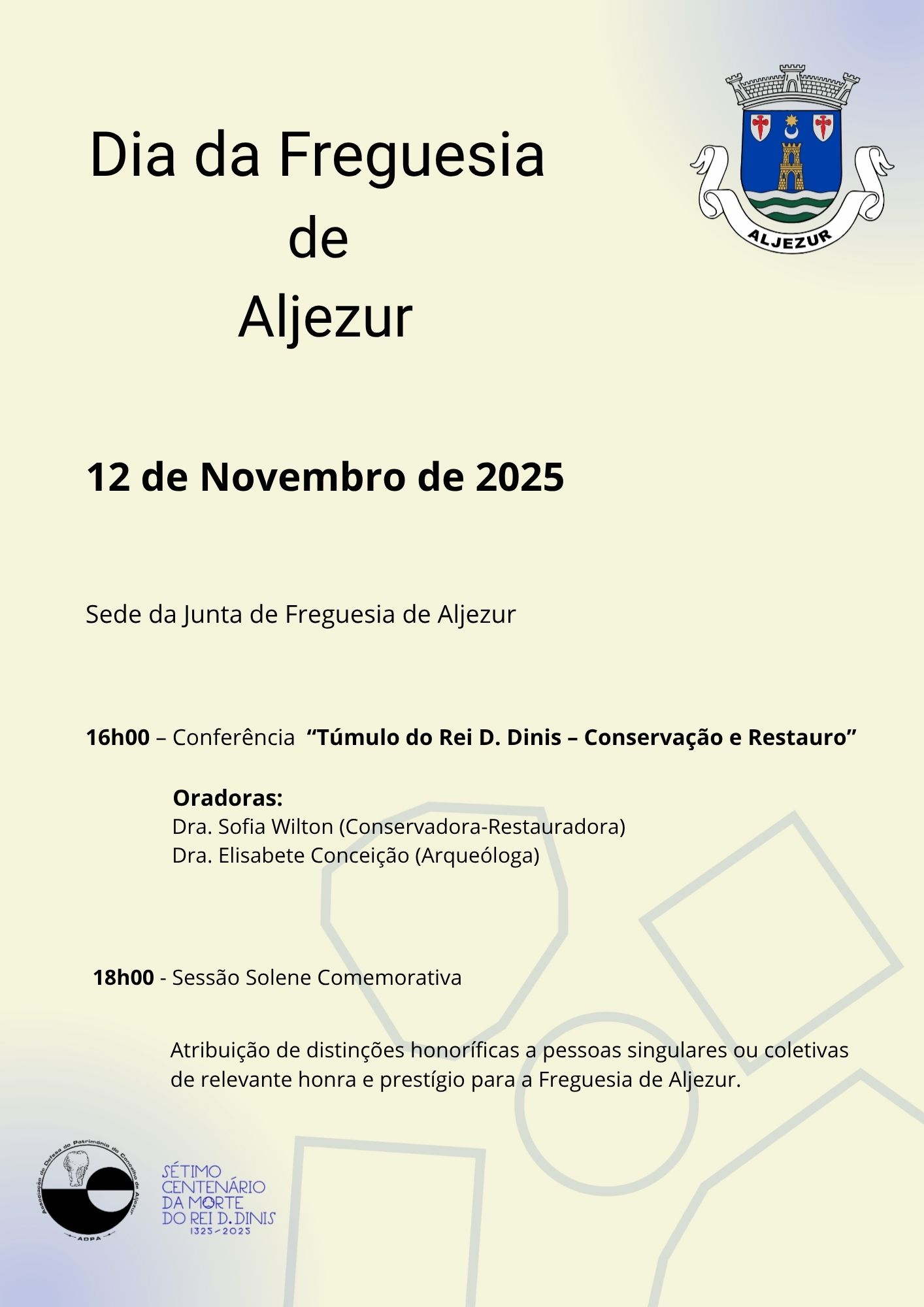 Devido às condições meteorológicas adversas previstas para o dia 12 de novembro, e visando garantir a segurança e o bem estar de todos, o evento do Dia da Freguesia de Aljezur, terá lugar no salão dos Bombeiros Voluntários de Aljezur.